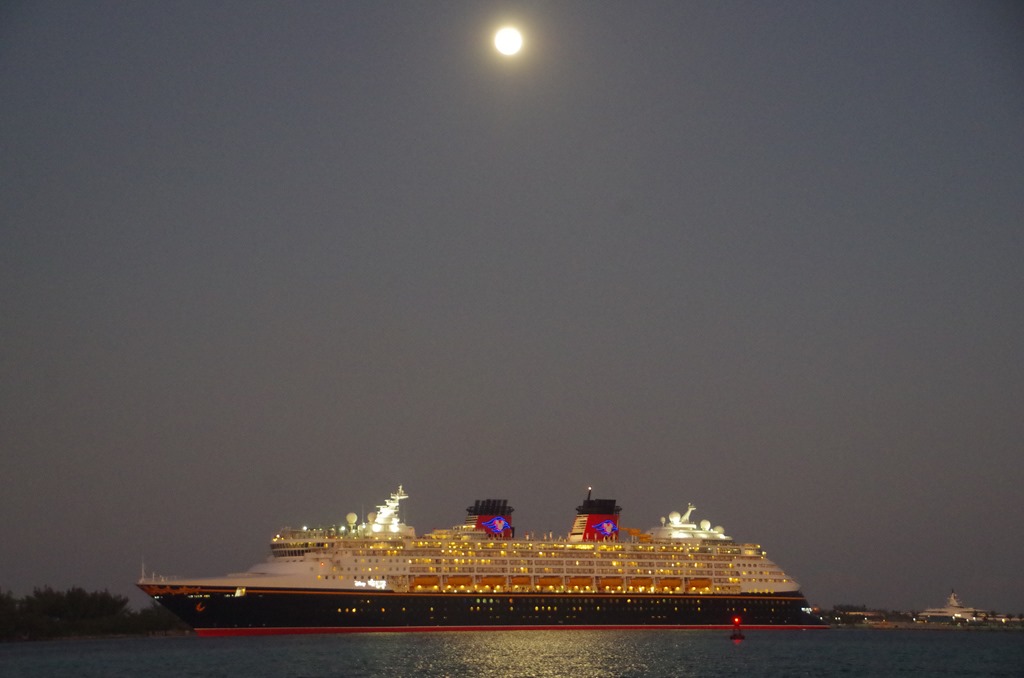 Our anchorage is all but desirable. We have good holding in the sand. The winds have been SE to E. The sounds of sirens, truck with air breaks and just cars blowing horns never stops! We will make the best of it. Below we watched a Disney boat leave at night. All ships disappeared at night to go to the next destination. Then a fresh set of ships started arriving at 6 am the next morning.