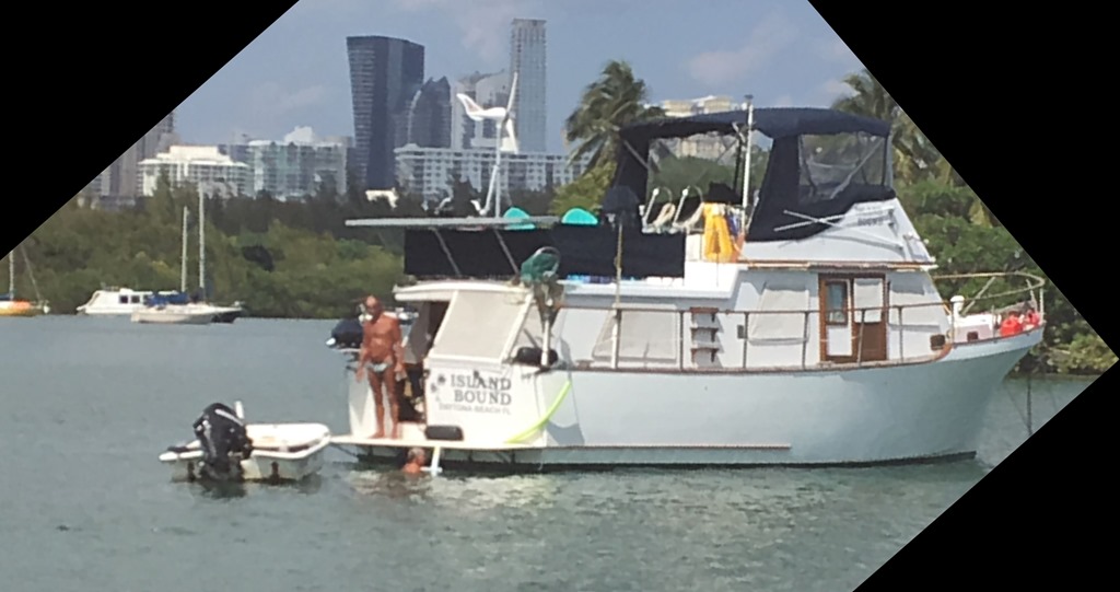 While the girls were out wandering around the bay on dingy and tubes, they were asked if we were in Marathon FL this past Dec & Jan. The girls really didn’t know but they came back and asked us. “Island Round” is the name of the Trawler of Jim & Donna. They had heard about the BOLO out on us on our way to Andros. So we went over later that evening. But they were getting ready to eat. We spent a few minutes explaining the bolo.