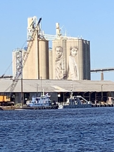 Look how awesome these murals are. Apparently an international artist painted these murals in hope they would send a message of unity. They tower 150 feet over the shipyard on the St. John River.