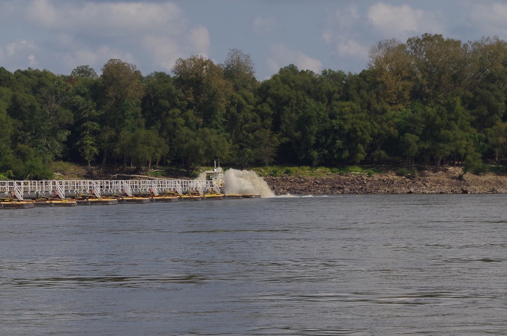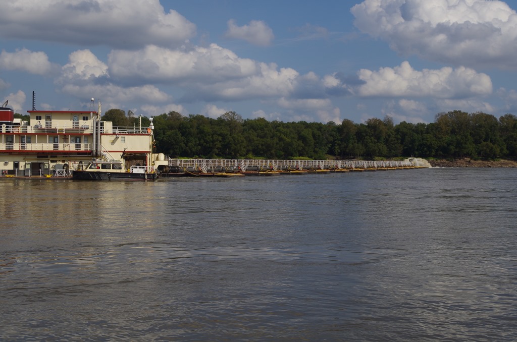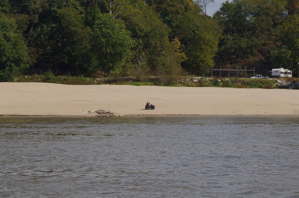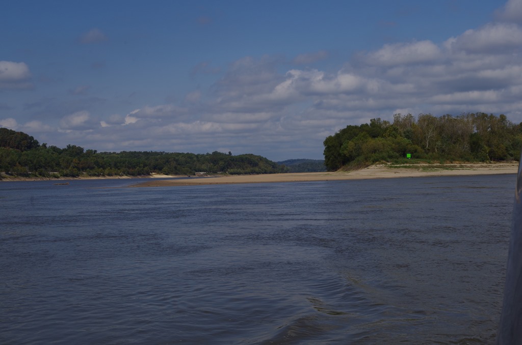 Boy, was it a chilly morning. We had to turn on the heat. Weather map says 39 degrees this morning. Anyways we had a quiet day motoring down the river yesterday. We enjoyed the beautiful landscape that surrounds us with Missouri on one side of us and Kentucky on the other side. We are continually amazed at the number of sandy shorelines on the Illinois River and the Mississippi. And on the lower Mississippi, the sandy beaches are huge. So far, the lower Mississippi is much wider and deeper than the upper Mississippi. So the tows present no issue as we pass them. We see the same type of anchorages on the inside curves of the river, which provide us with a sandy shore and low currents.
