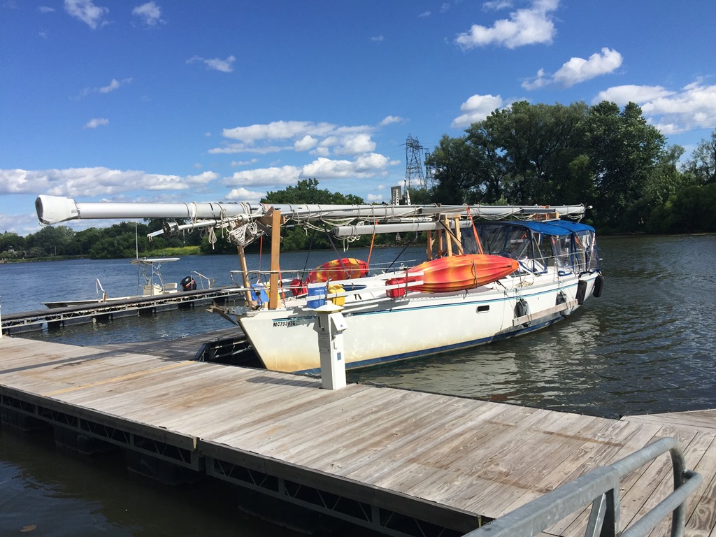 This is the free dock at Sylvan Beach; it was very nice. We met a couple Larry and Bev Mosser on a trawler named “Canadian Flyer”. They travel 3 months out of the year now. They went around the world on their previous boat: a 54’ Tayana. The were celebrating 56 years of marriage. Congratulations Larry & Bev ![]()