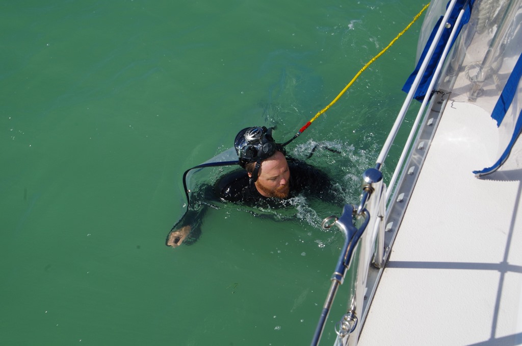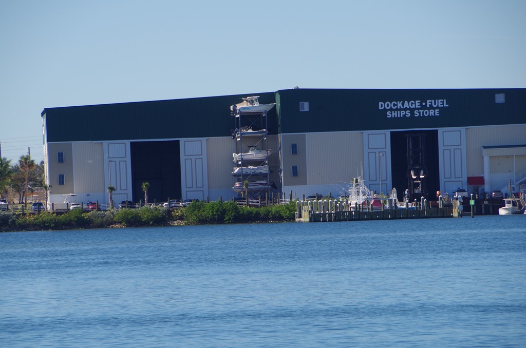 He guided us into Titusville city dock by dingy after clearing out the engine.