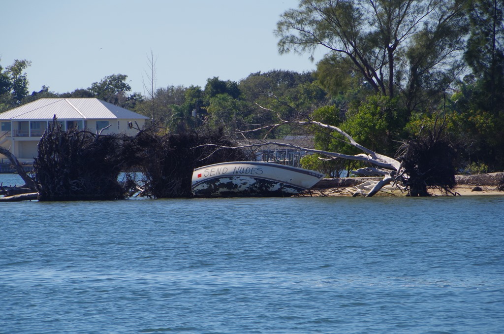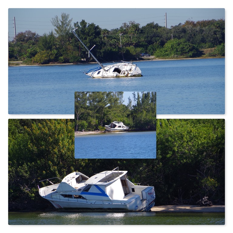 After we passed under the bridge I noticed this grounded boat was still here from our last visit here.