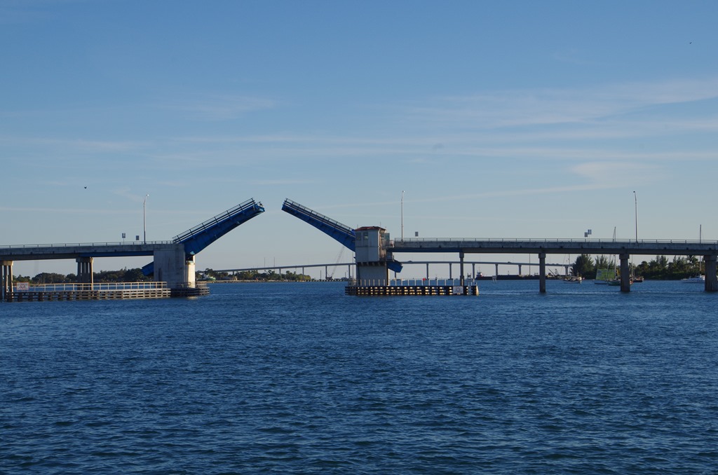 Well, come to find out the Memorial Twin Bridges are under construction. We didn’t have to wait for another bridge. From what I understand The Daytona area along with a few other areas are replacing their bascule bridges with new bridges 65 feet tall.