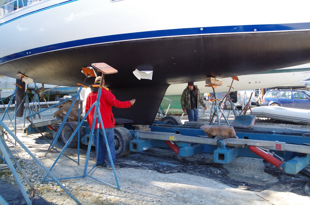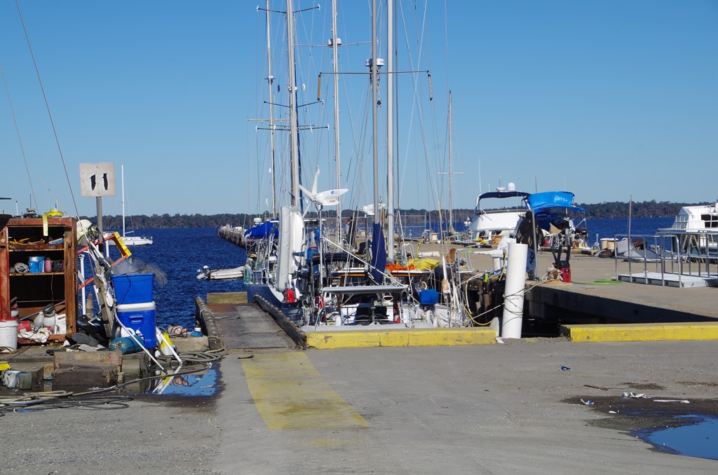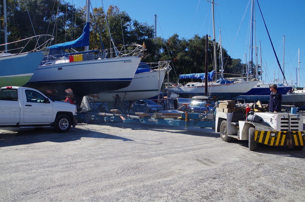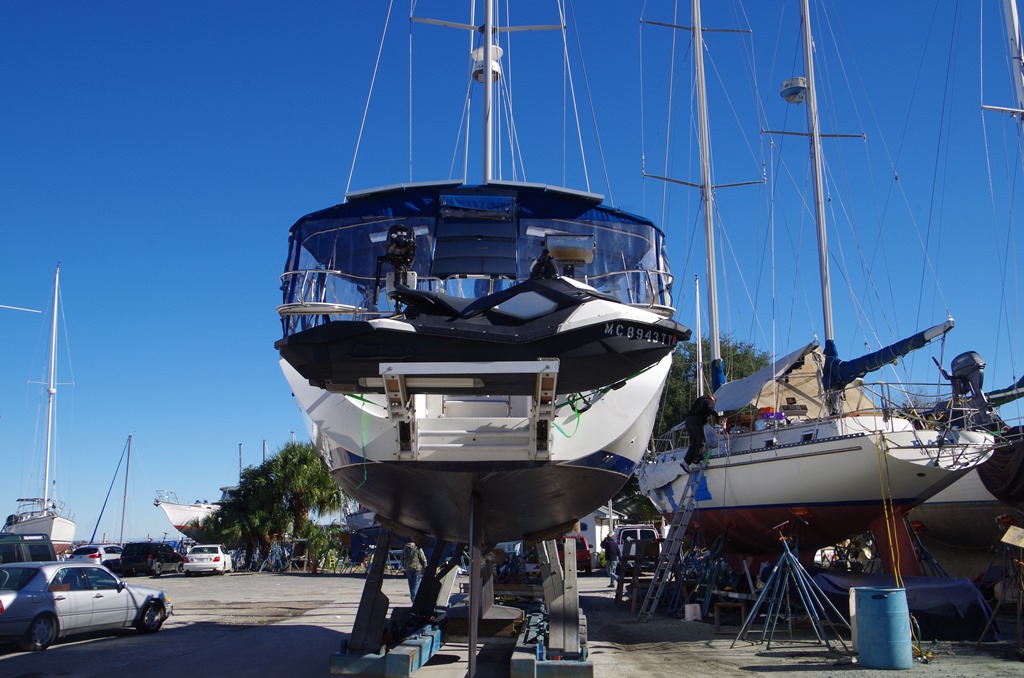 Wow…We are back. After an amazing summer on Boatnicks, Now for a few fabulous months we will see where the wind takes us. It’s is funny I was actually a bit scared to leave Sailbeauty at Green Coves Springs, however; It turned out to be a nice place. It really isn’t just a marina but also a boat yard to work on your boat or they have what is called long term storage. We had her moved to the work area a few days before we arrived. Only to find a tad bit of a mess. Not due to Green cove Springs but to nature. One of our port side windows leaked so we had a bit to clean up. It never fails that I make more out of it than what it is. I freaked-out and cried a bit like a child with a broken toy. Only to find out after I cleaned the mess up everything was fine. Bryce buffed and waxed her along with two more coats of bottom paint.  Boy she sure does look pretty. I am not sure why but when we get on her I feel so young and alive. LOL Okay after 9 days of working on her and getting her ready for launch day she is ready.