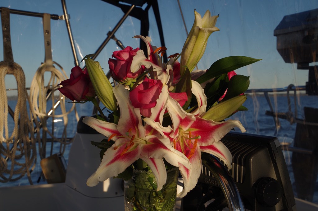 Bryce was looking at Active Captain. I love flowers. for some reason these really hold there scent. I love walking out to the cockpit just to smell them.