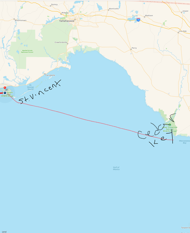 Today we are headed towards Saint Vincent Island where we will anchor tonight.  Tomorrow we are planning a 130 mile crossing to Cedar Key.  Yesterday when we arrived here, we took the jet ski to the island of the State Park and walked the sandy shoreline.