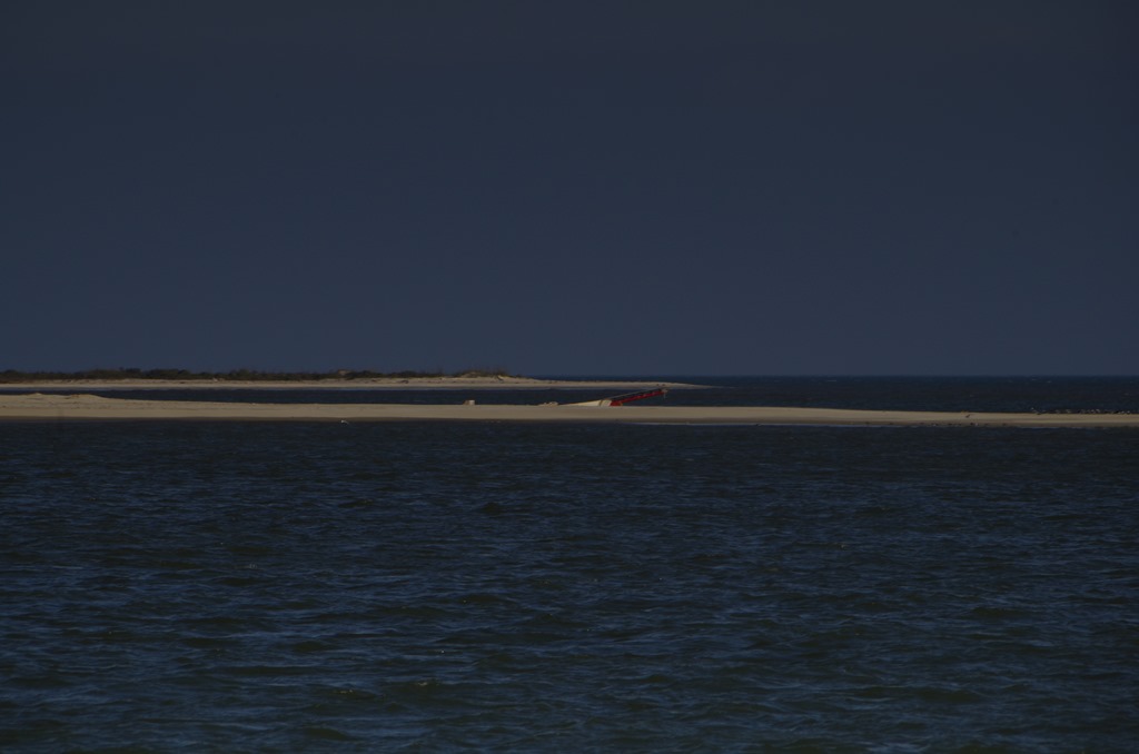 We have read that there was a sunken sailboat between Wreck Island (shown here) and the sandbar. I think that could be the mast. This is Wreck Island we anchored near.