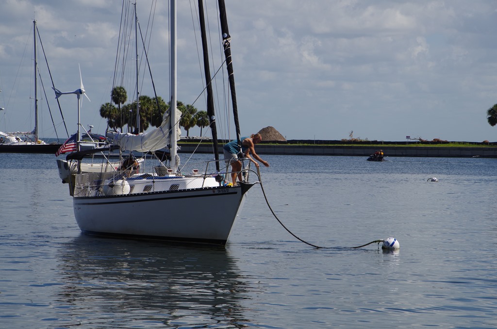 Unfortunately, we are not able to get under the bridge to get on a mooring ball.